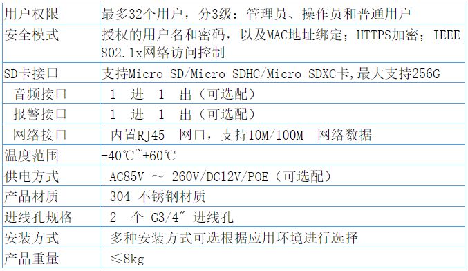 6.防爆规格:BNY防护 等级IP68室内、室外安装,全天候用。