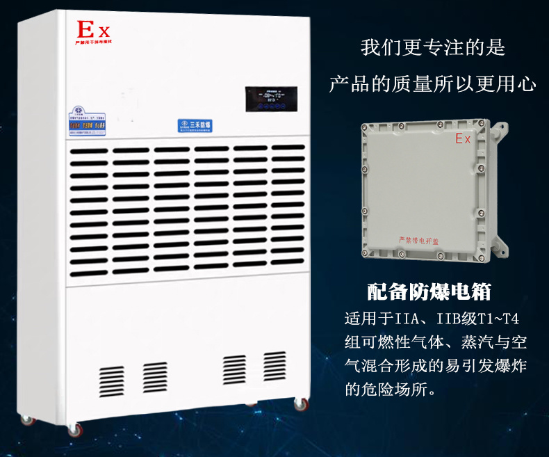 1、防爆除湿机是为存在或可能存在级别为IIA、IIB、IIC级。